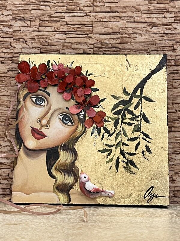 Painting on wood with embossed details 20cm x 20cm