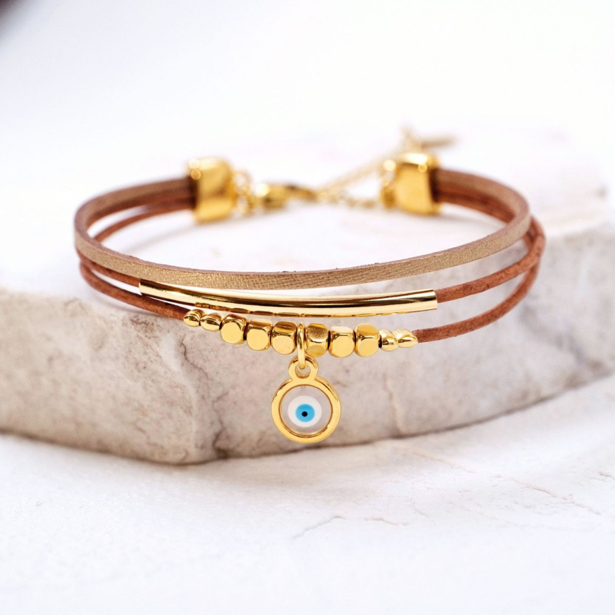 Handmade leather bracelet with gold-plated enamel eye